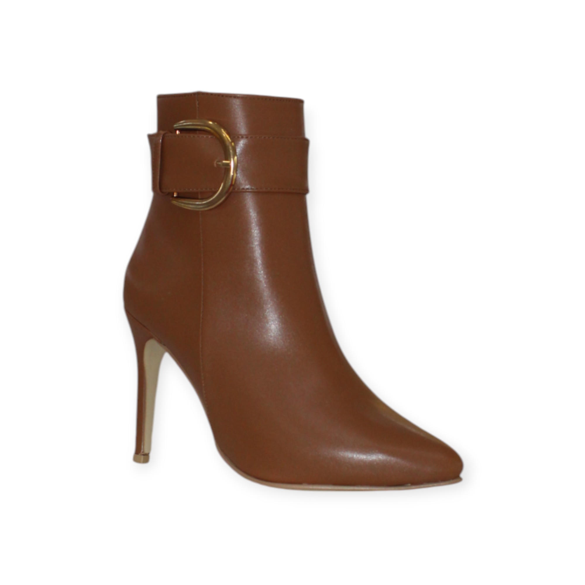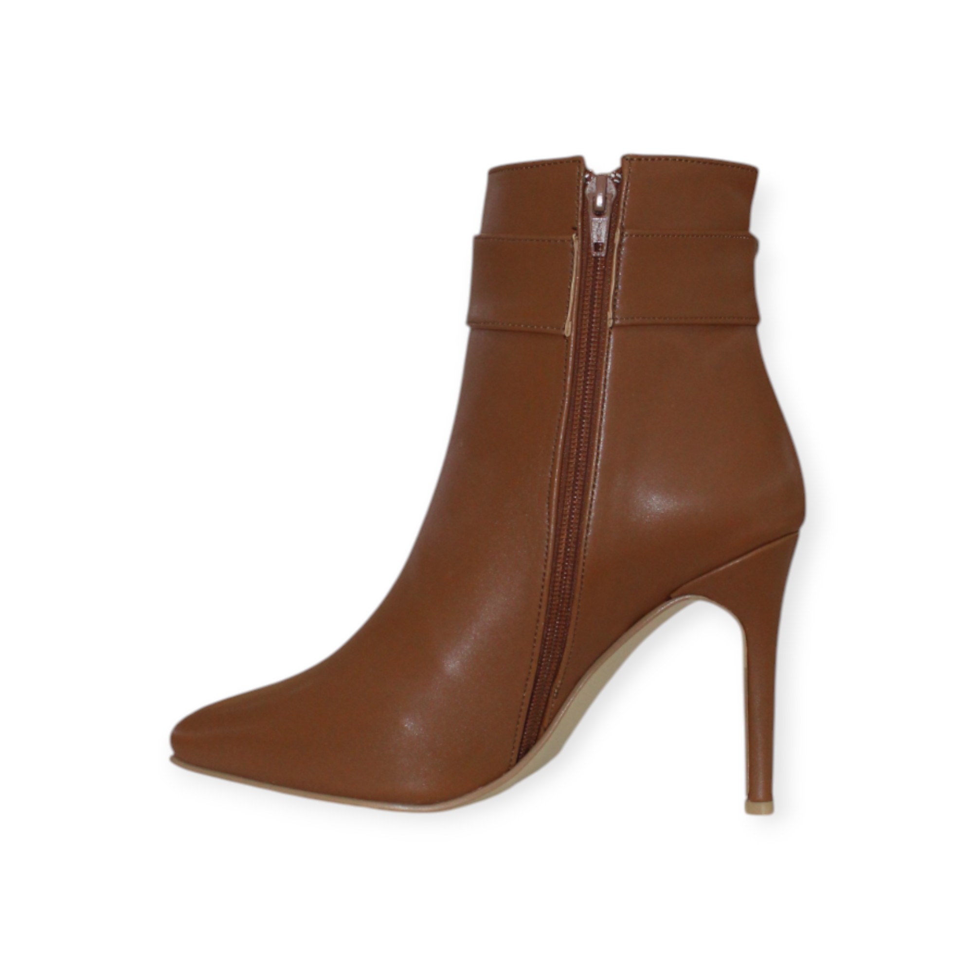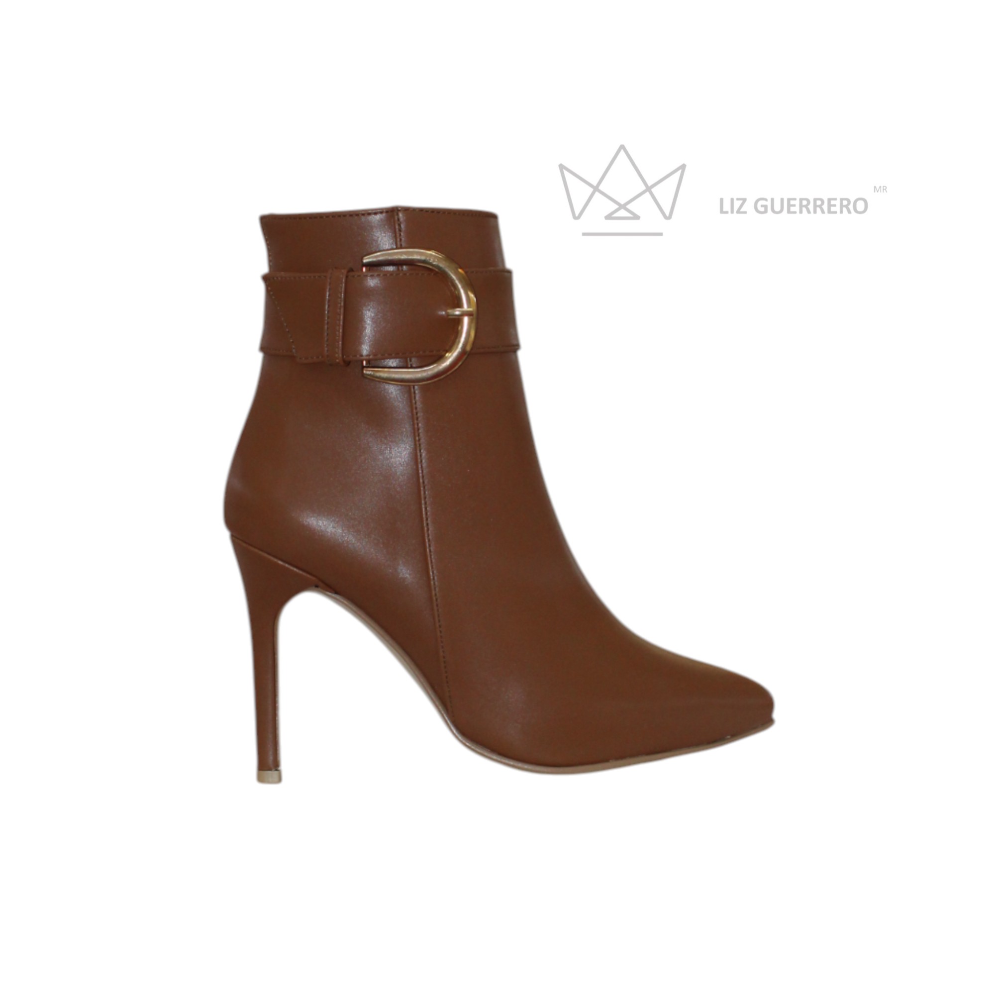 Botin en color tan ó miel material nairobi sintético, tacón aguja con altura de 10cm. Calzado Hecho en México